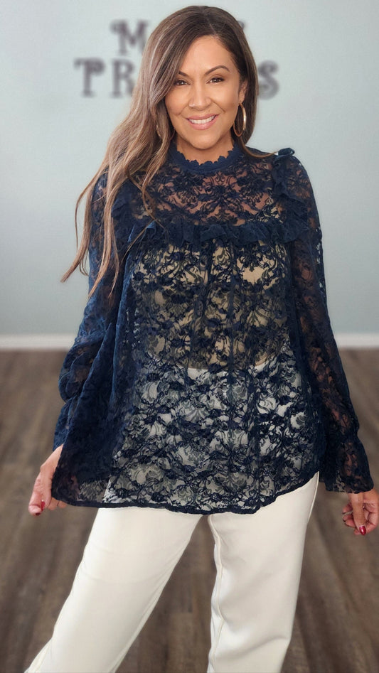 Charmed in Lace Blouse-Navy