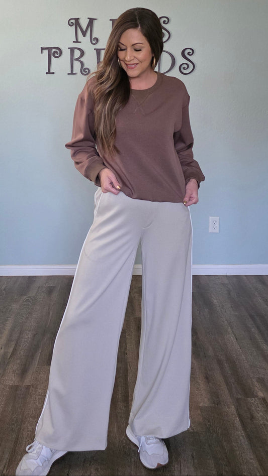 Chic Comfort Wide-Leg Pants-Oatmeal