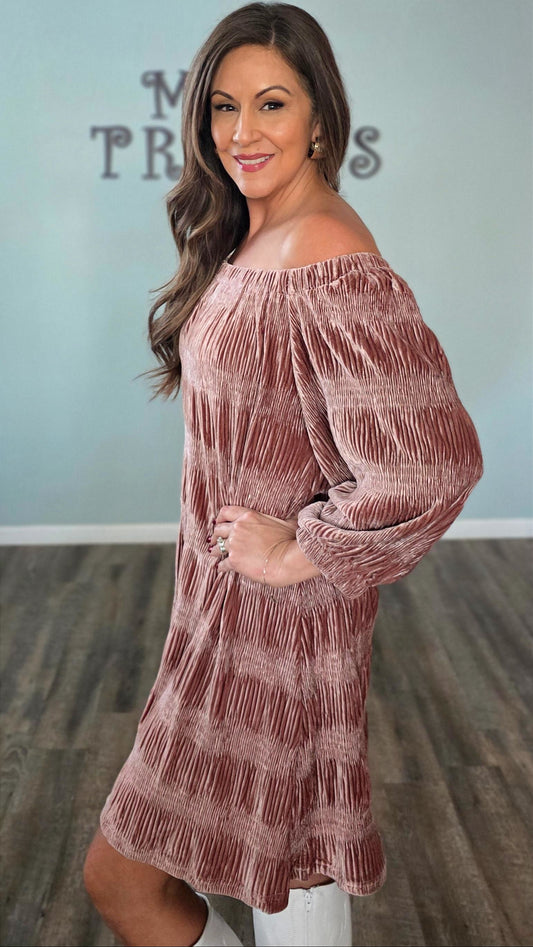 Velvet Elegance Off Shoulder Dress-Mauve
