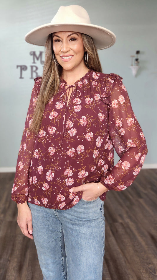 Luxurious Satin Charmeuse Button Front Shirt-Burgundy