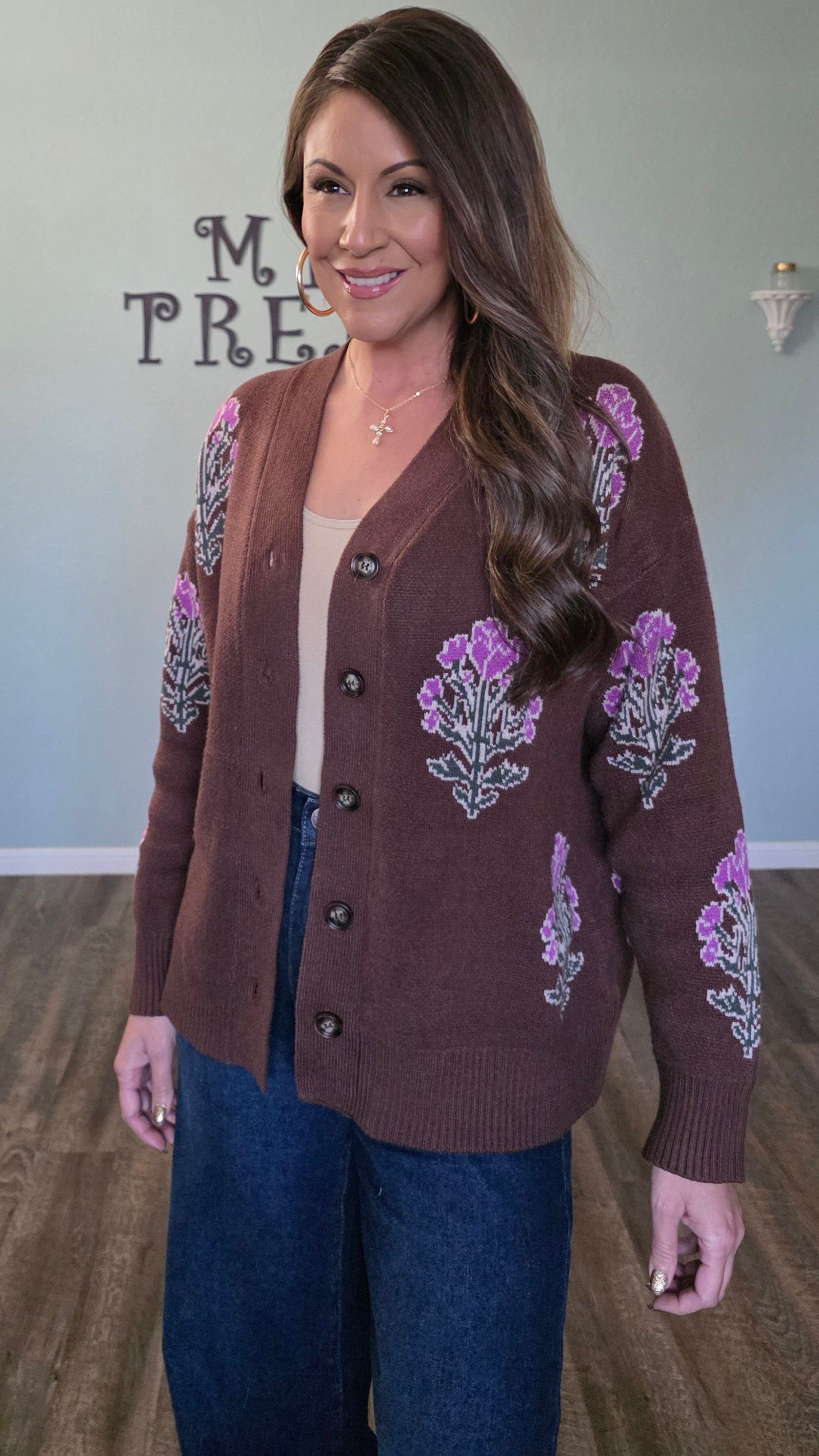 Soft, cozy, and beautifully detailed, this Umgee cardigan is an easy standout. Designed with an ultra soft knit and subtle floral pattern throughout, it adds texture and warmth while still feeling refined. The material has a generous amount of stretch and a relaxed fit, making it comfortable for all day wear and easy layering.