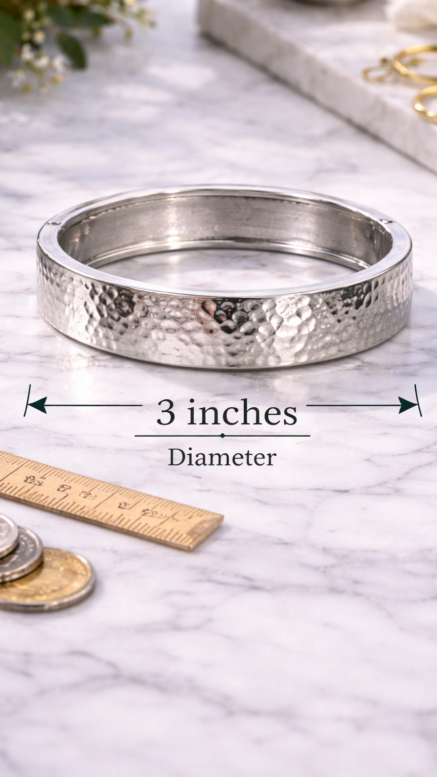 • Hammered pressed silver tone finish