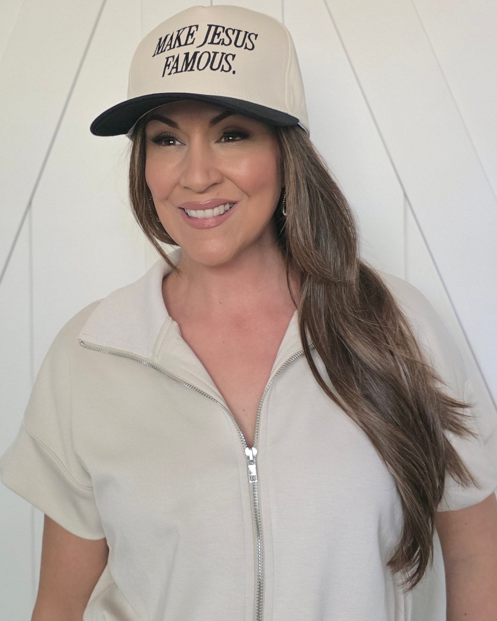 This two-tone hat is the perfect blend of style and purpose, featuring a bold “Make Jesus Famous” statement. Designed with a structured front and classic color block look, it adds a trendy touch to any outfit while still being easy to wear every day. Lightweight and breathable, it is made for all-season comfort whether you are out running errands, heading to a game, or just keeping it casual.