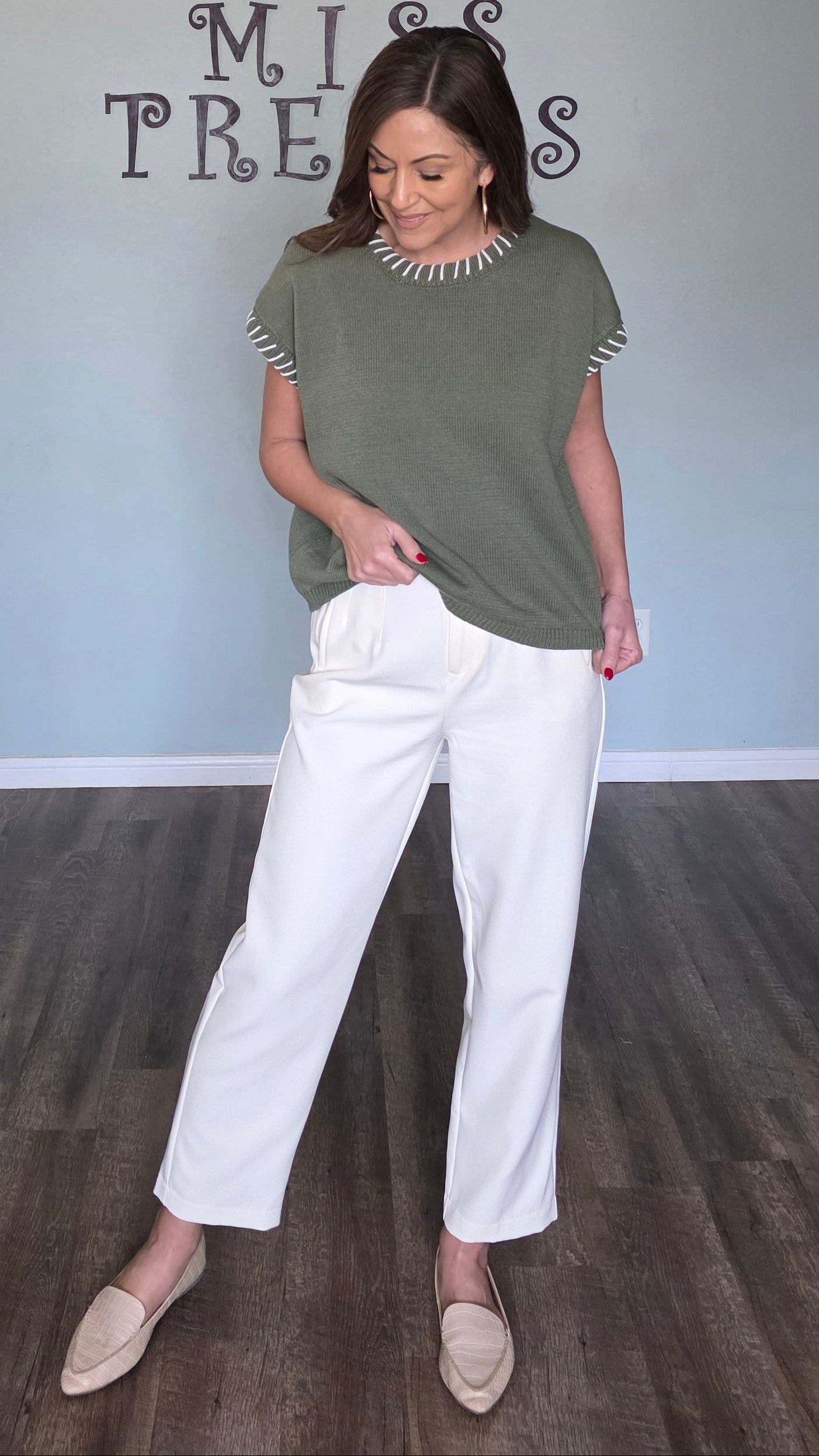 Stitch Detail Sweater- Light Olive