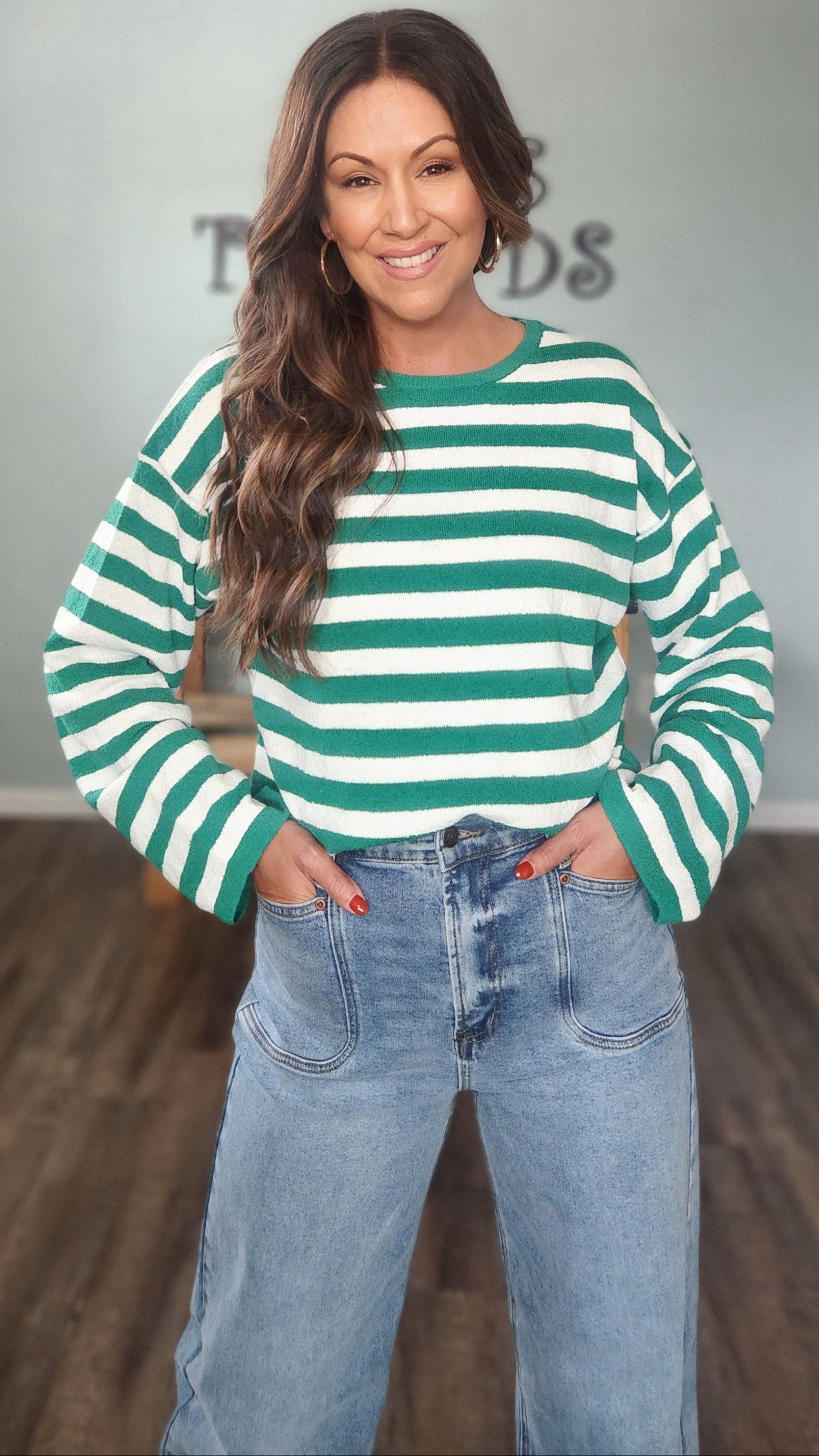 Classic, cozy, and easy to style — this striped sweater pullover brings that timeless “off-duty chic” feel you can wear anywhere. Whether it’s layered with denim and sneakers for a laid-back weekend or tucked into wide-leg trousers for a casual office look, this is one of those pieces that just works. The relaxed silhouette keeps you comfy from season to season — it’s a closet staple you’ll reach for on repeat.