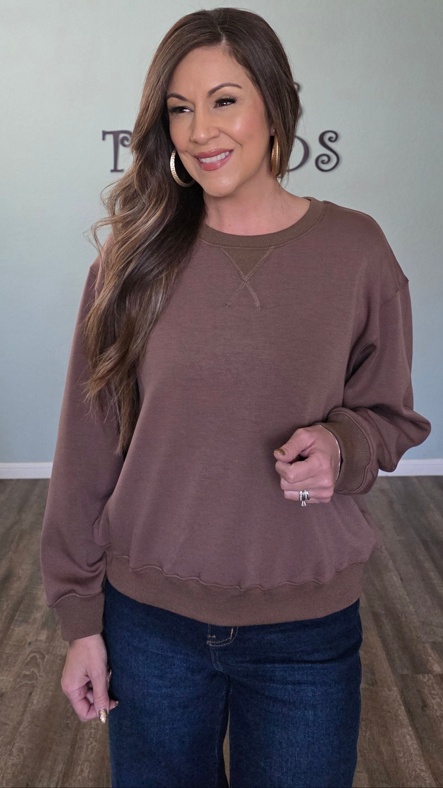 This timeless neoknit fleece pullover is the kind you reach for again and again. Designed with a relaxed fit, ribbed details, and subtle V stitching at the neckline, it blends everyday comfort with just enough structure to feel pulled together. Perfect for casual days, errands, or laid back layering. The material has a generous amount of stretch and runs true to size with a relaxed fit.